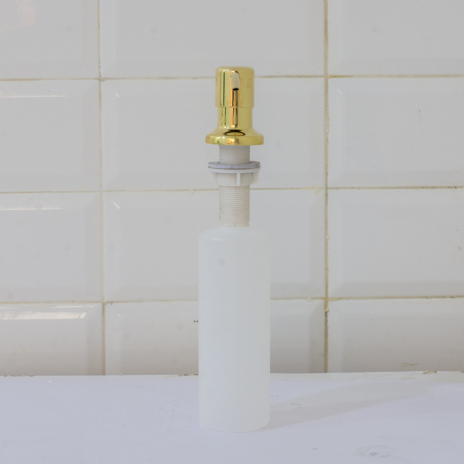 Unlacquered Brass Soap Dispenser to be used with your brass kitchen faucet from Insideast
