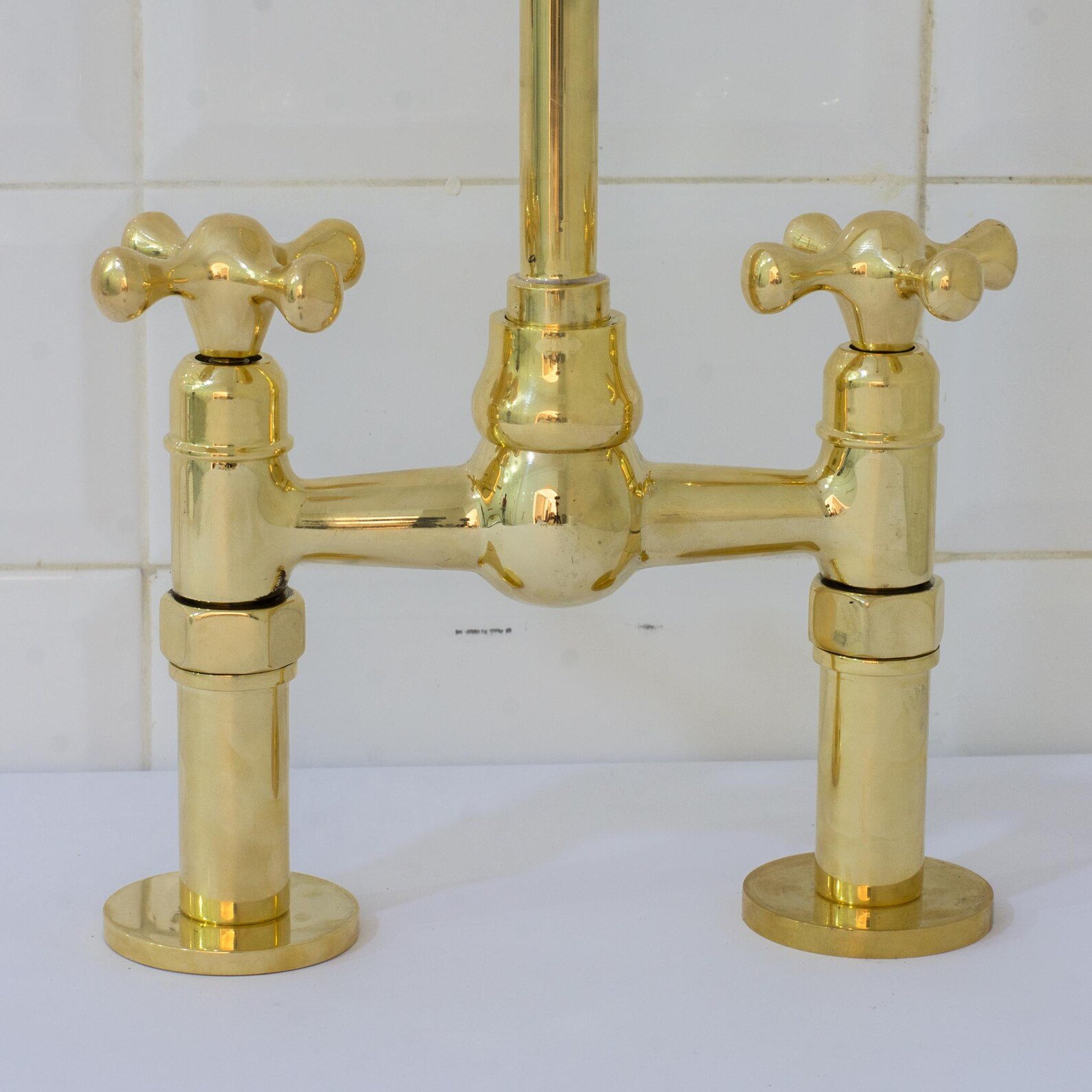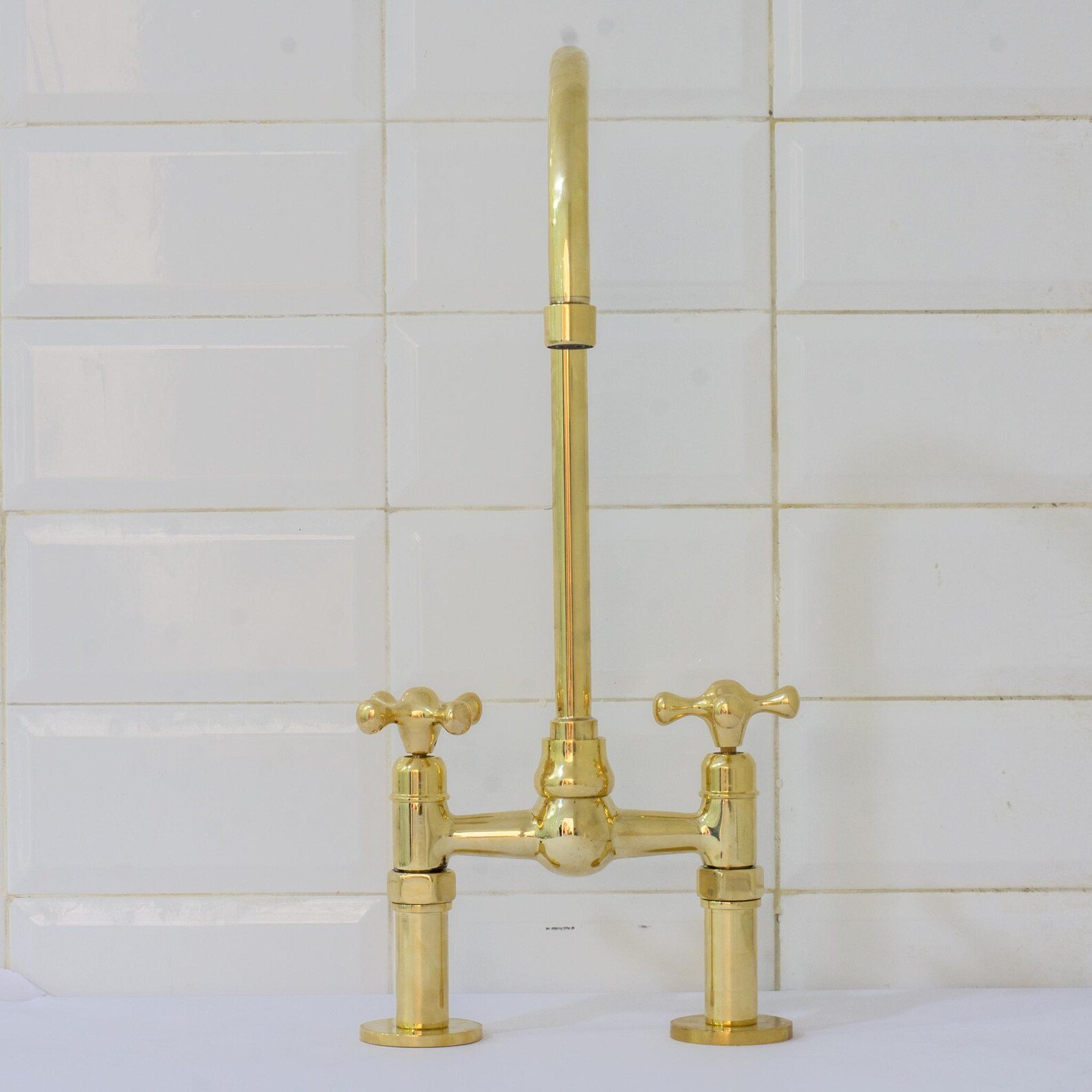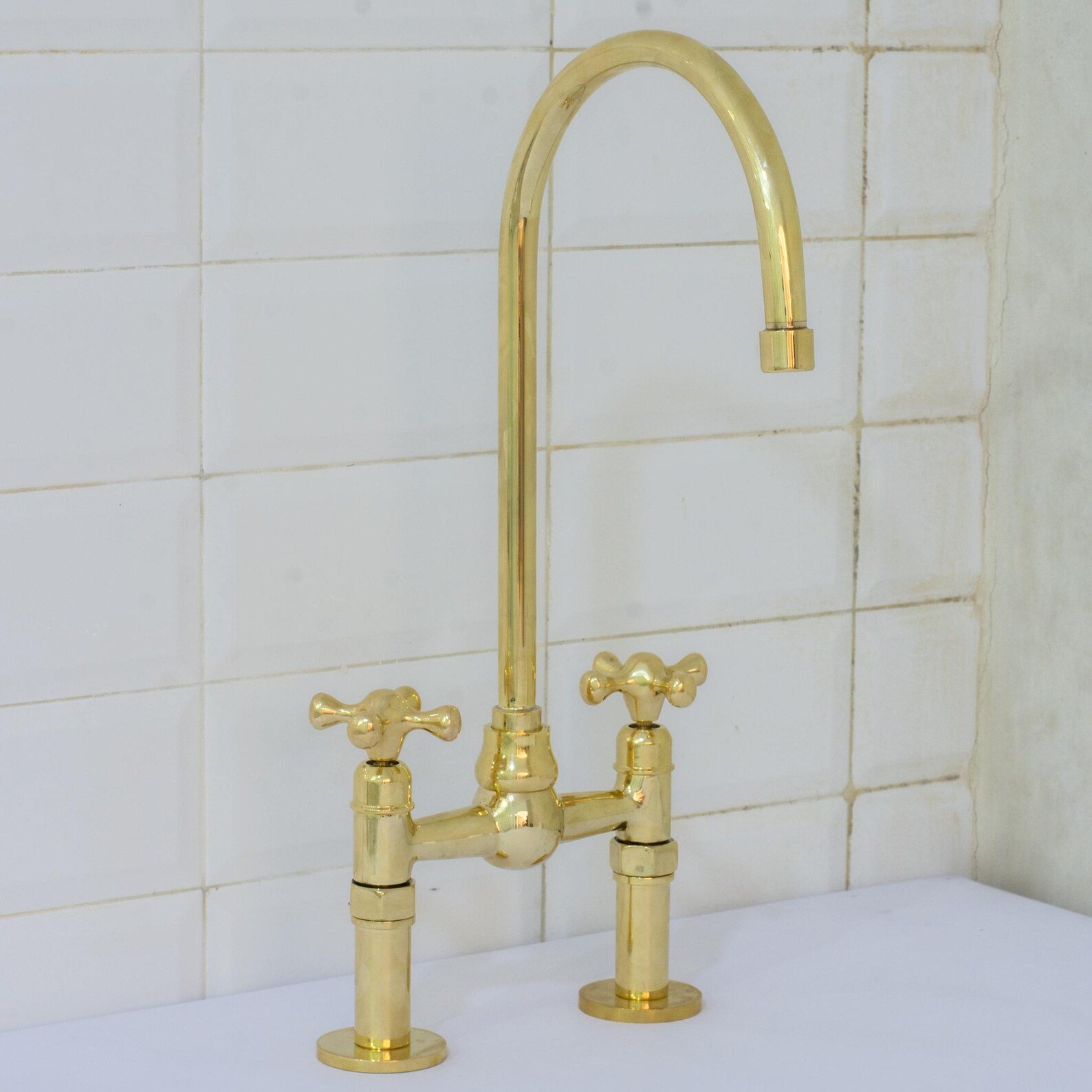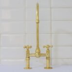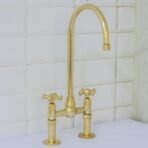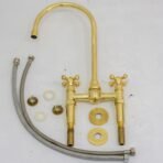 Unlacquered Brass Ball Center Bridge Faucet, Bridge Kitchen Faucet, 2-Hole Kitchen Faucet, Brass Kitchen Faucet