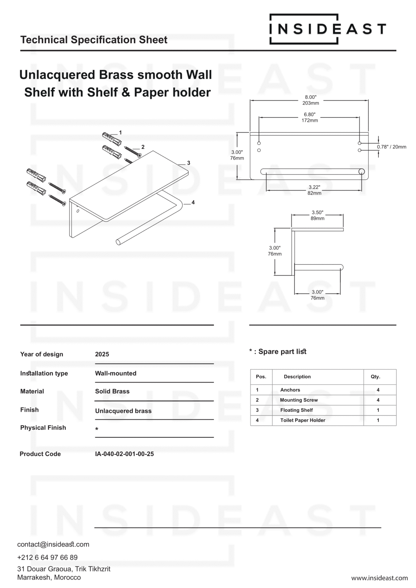 • Solid Brass Construction: this shelf is made of solid brass to ensure it lasts for years.