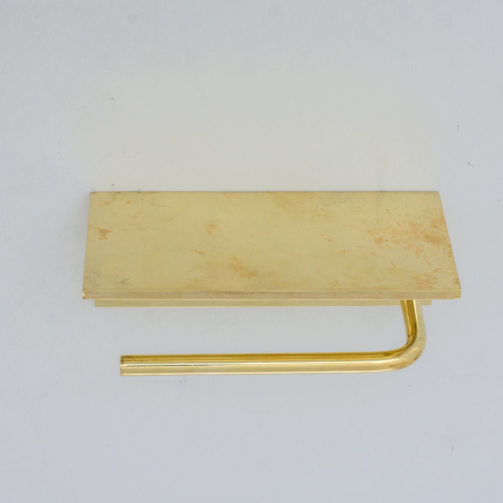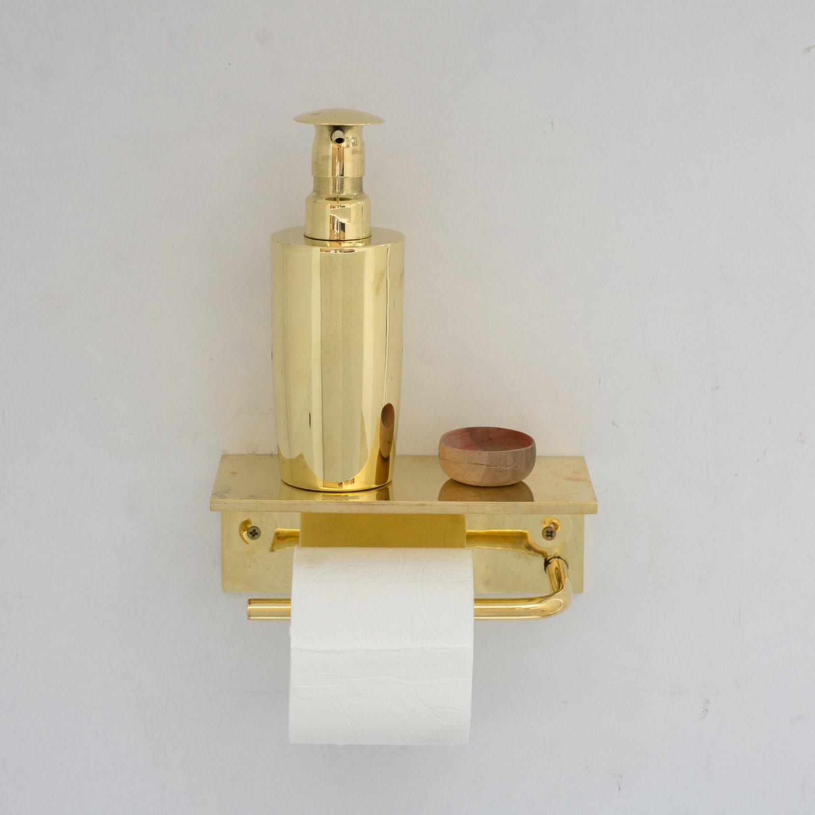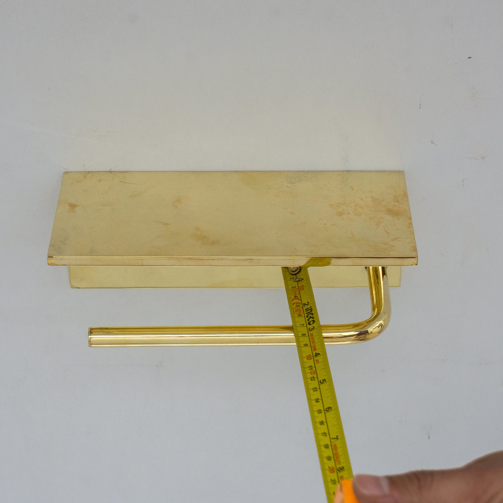 Unlacquered Brass Bathroom Floating Shelf With Hook, Wall Mount Shelf With Toilet Paper Holder