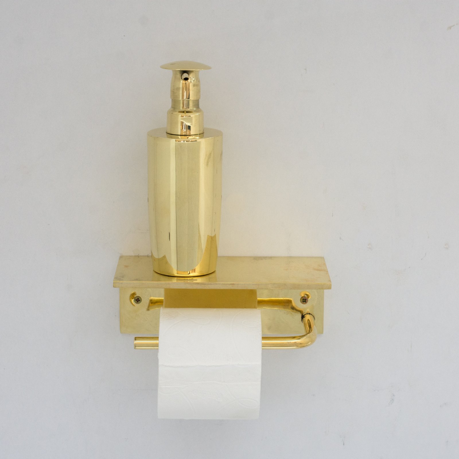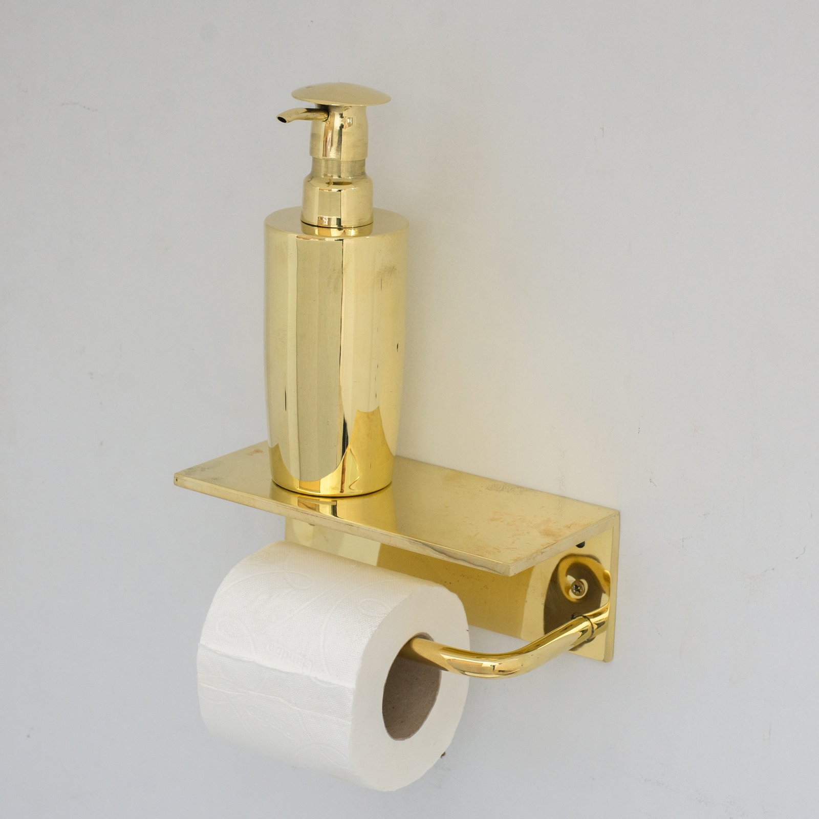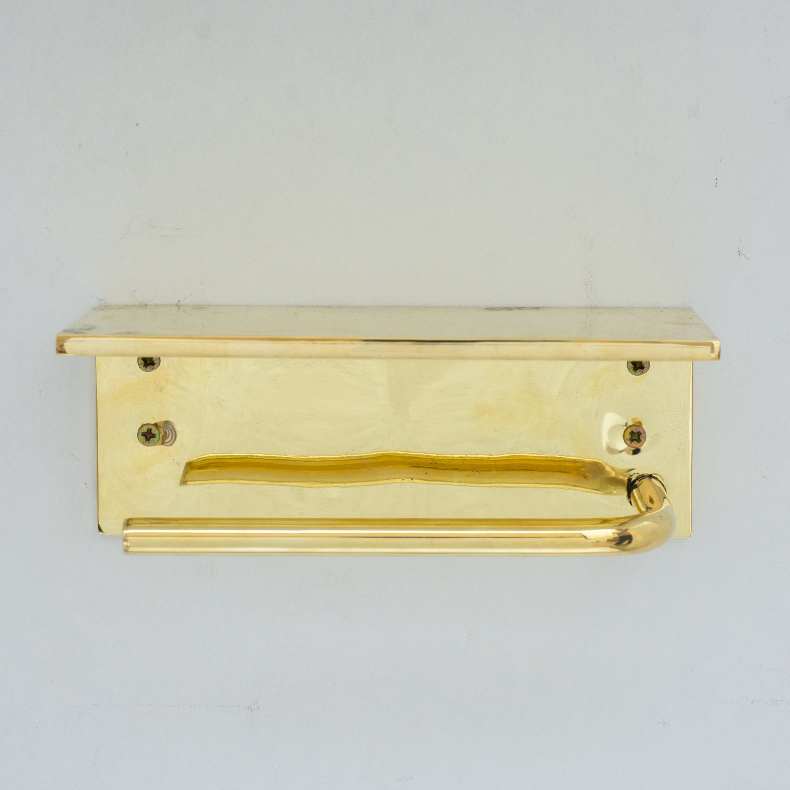 Unlacquered Brass Bathroom Floating Shelf With Hook, Wall Mount Shelf With Toilet Paper Holder